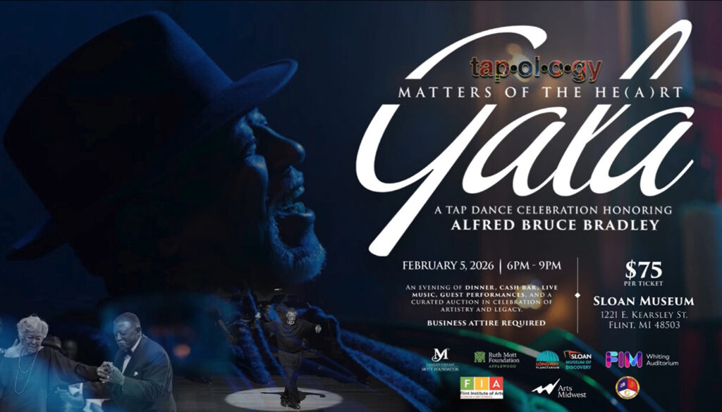 This year’s festival honors Founder Alfred “Bruce” Bradley, whose recent recovery from heart surgery reflects the festival’s theme: both heart and art sustain life. A Flint native and international touring artist, Bradley’s lifelong dedication to teaching and mentorship has shaped generations of tap dancers across the country.